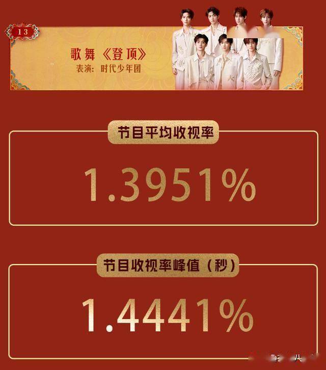 平均收视率1.3996%,收视率峰值1.46%,险胜时代少年团。