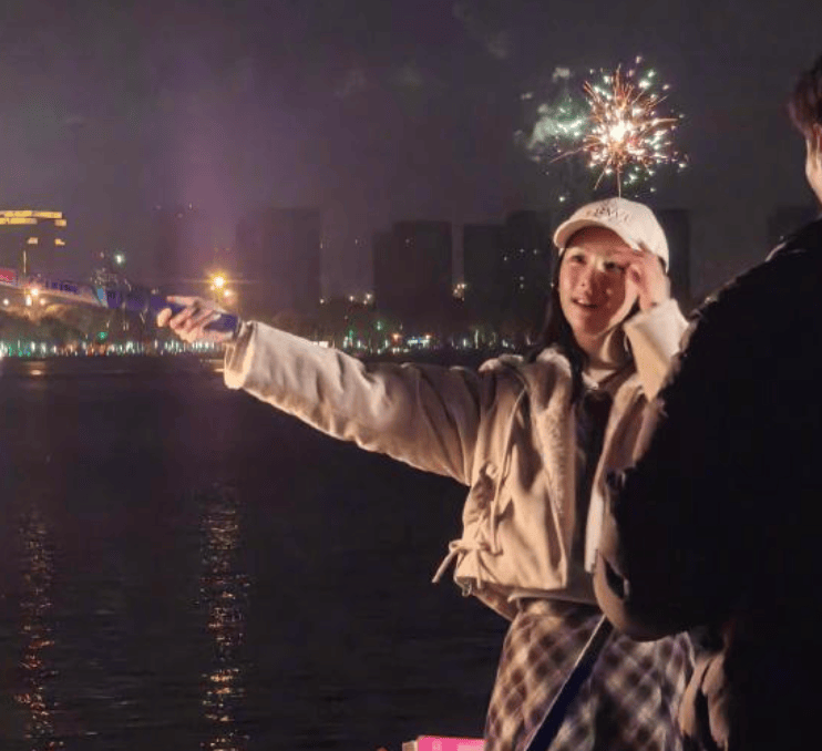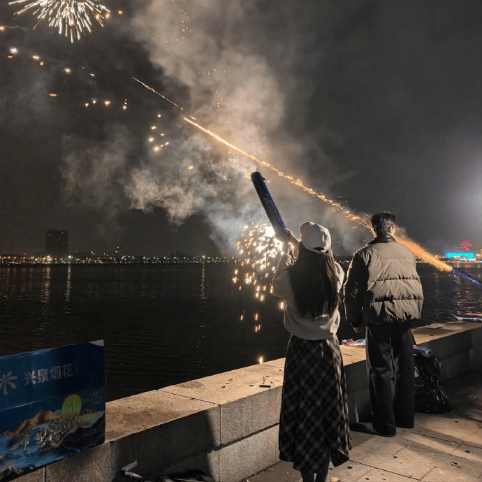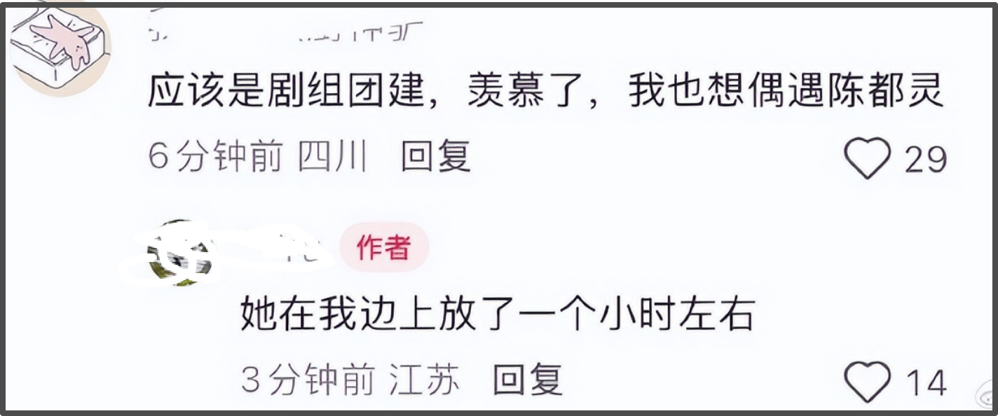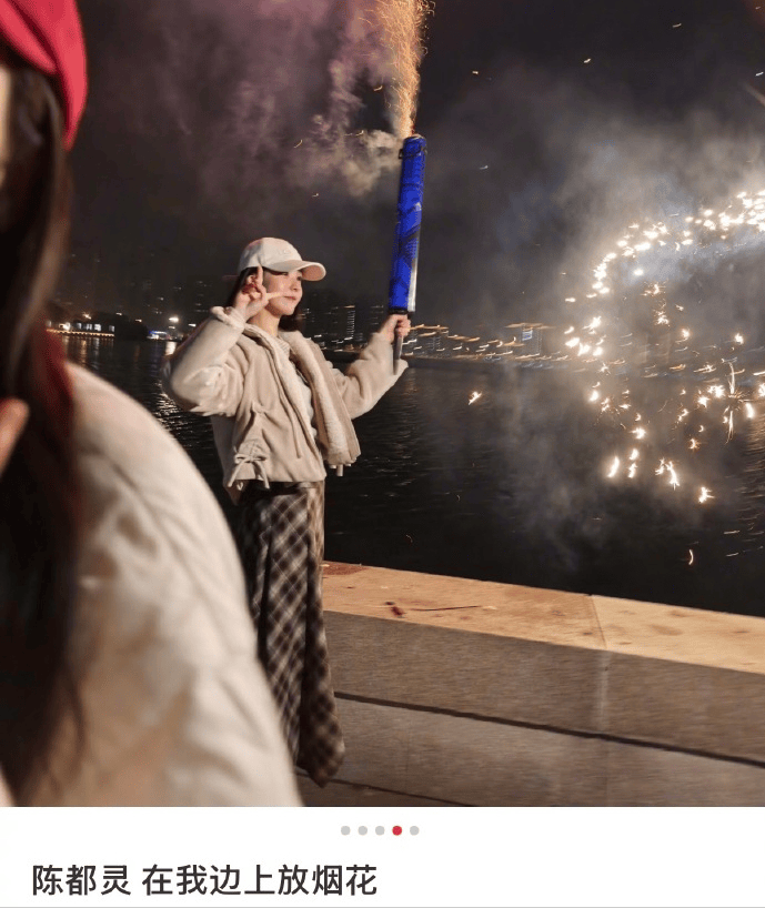 也有网友偶遇了女星陈都灵,疑似在剧组过年,大家还一起放了烟花,路人一个小时都没认出来,也是很可爱了。