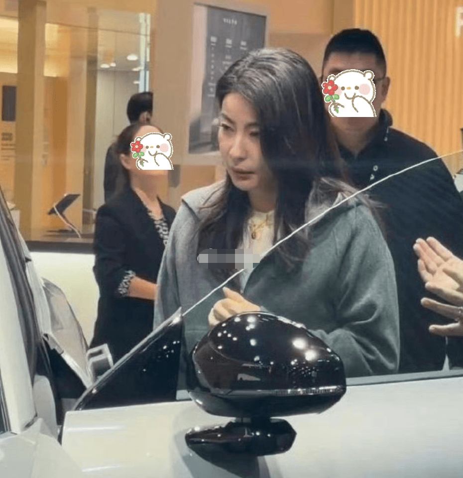 网友偶遇郭晶晶看车,感叹44岁的郭晶晶看着白头发多了一些,她正在认真听销售员介绍,偶尔交流一下,看着似乎打算买车。