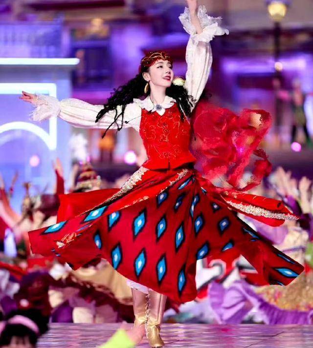 那便是演绎了《舞乐新疆》的舞蹈,迪丽热巴以新疆演员为代表登台,本身就有维吾尔族舞蹈为基础,然后又融入了现代舞。