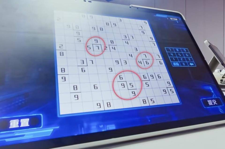 现场挑战界面上,灰色区域内的数字为目标数字,每次可以顺时针旋转九十度,当红色区域内的数字与对应的灰色目标数字一致时,红色区域将变为绿色,选手通过旋转小球,将所有红色区域变为绿色则为挑战成功。