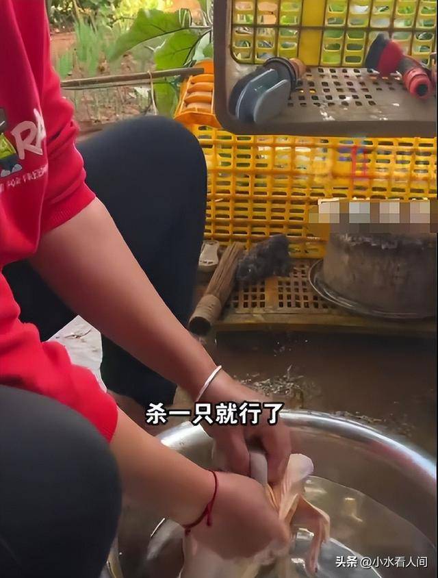 2月17日,大年初一,一家人团圆,全红婵妈妈亲手杀鸡筹备家常团圆饭。