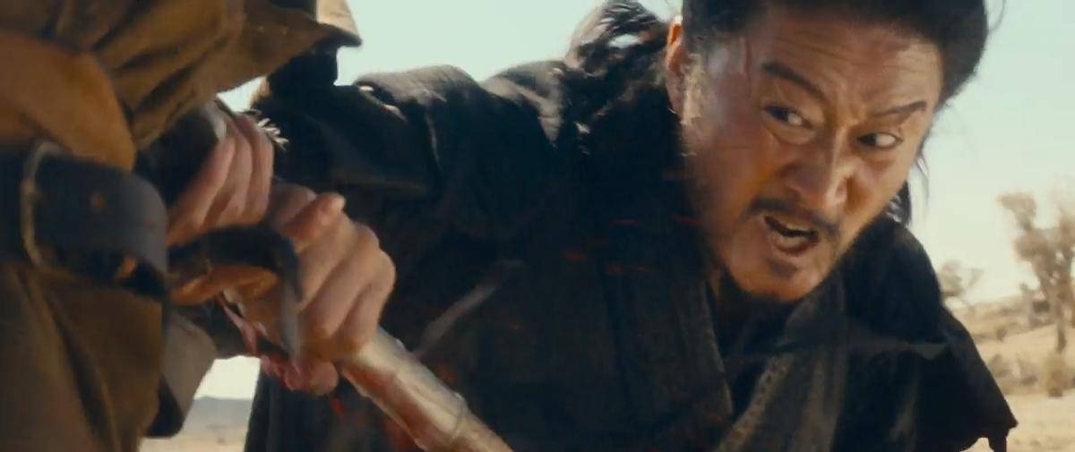 他和吴京有两场对决,一场在沙尘暴里,一场在沙漠火光中,两场风格不同,但每一场都把“宿命对决”这四个字打得淋漓尽致,是全片动作戏里最被反复提及的段落。