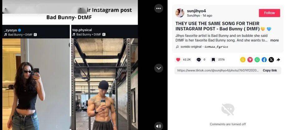 这一切源于一个看似巧合的关联:志效过去曾公开分享过自己最喜爱的艺术家和歌曲,而近期,尹成彬在其Instagram上发布的内容,恰好与志效的喜好高度吻合。这段“找关联”的视频迅速获得了超过62万次点赞和52万次浏览量,成为粉丝与网友热议的焦点。