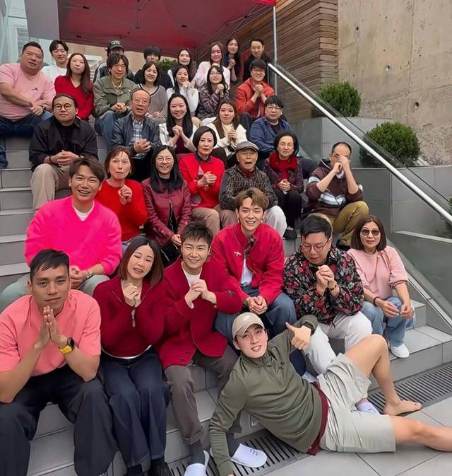 今年的拜年,各位艺人还是坐在汪明荃别墅前中的楼梯进行合照。周嘉洛、黄建东、阮浩棕以及周奕玮等人,都是大家比较熟悉的TVB艺人。
