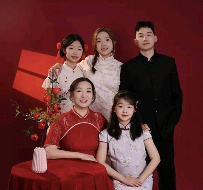 大年初二,谢浩男一家拍了全家福,大妹漂亮,小妹可爱,谢浩男帅气,二妹反差最大。