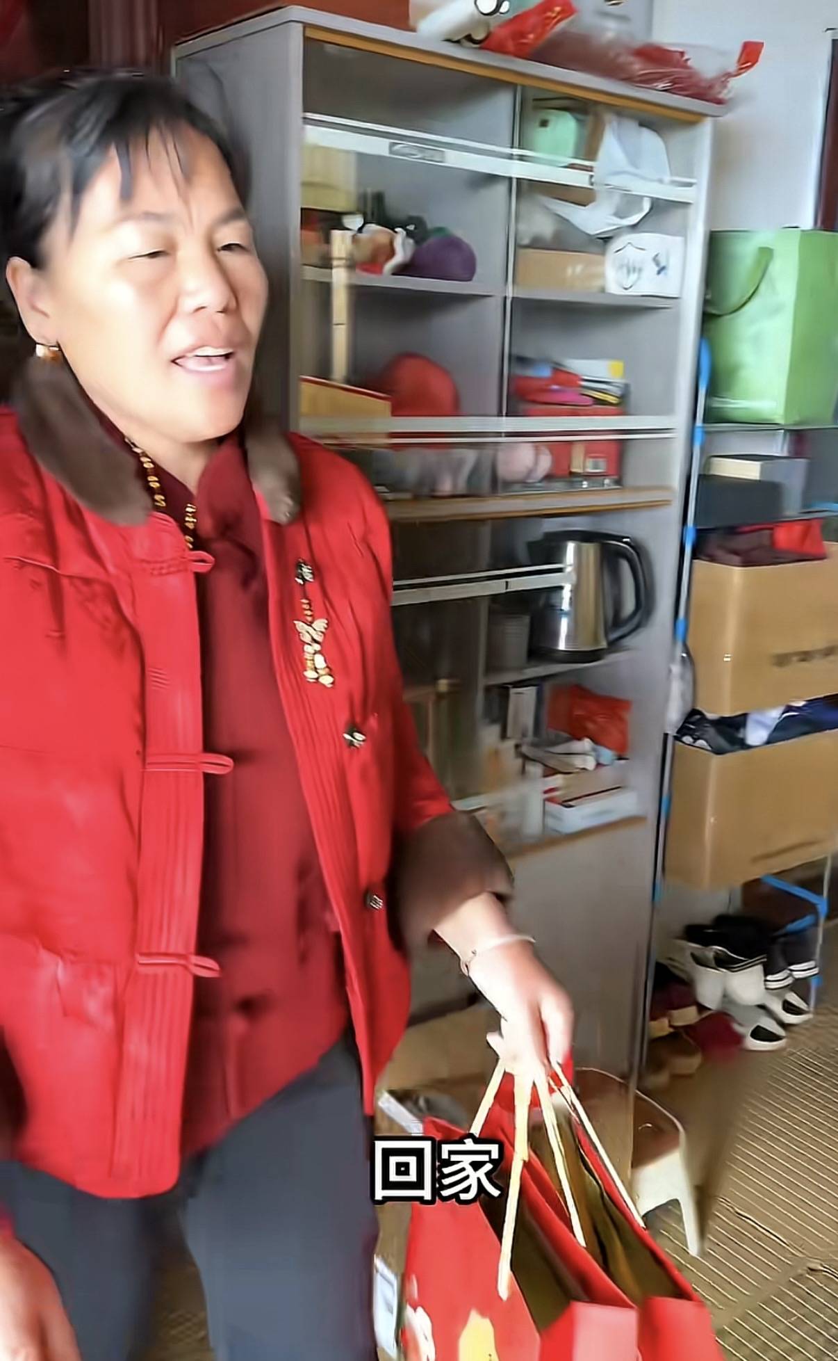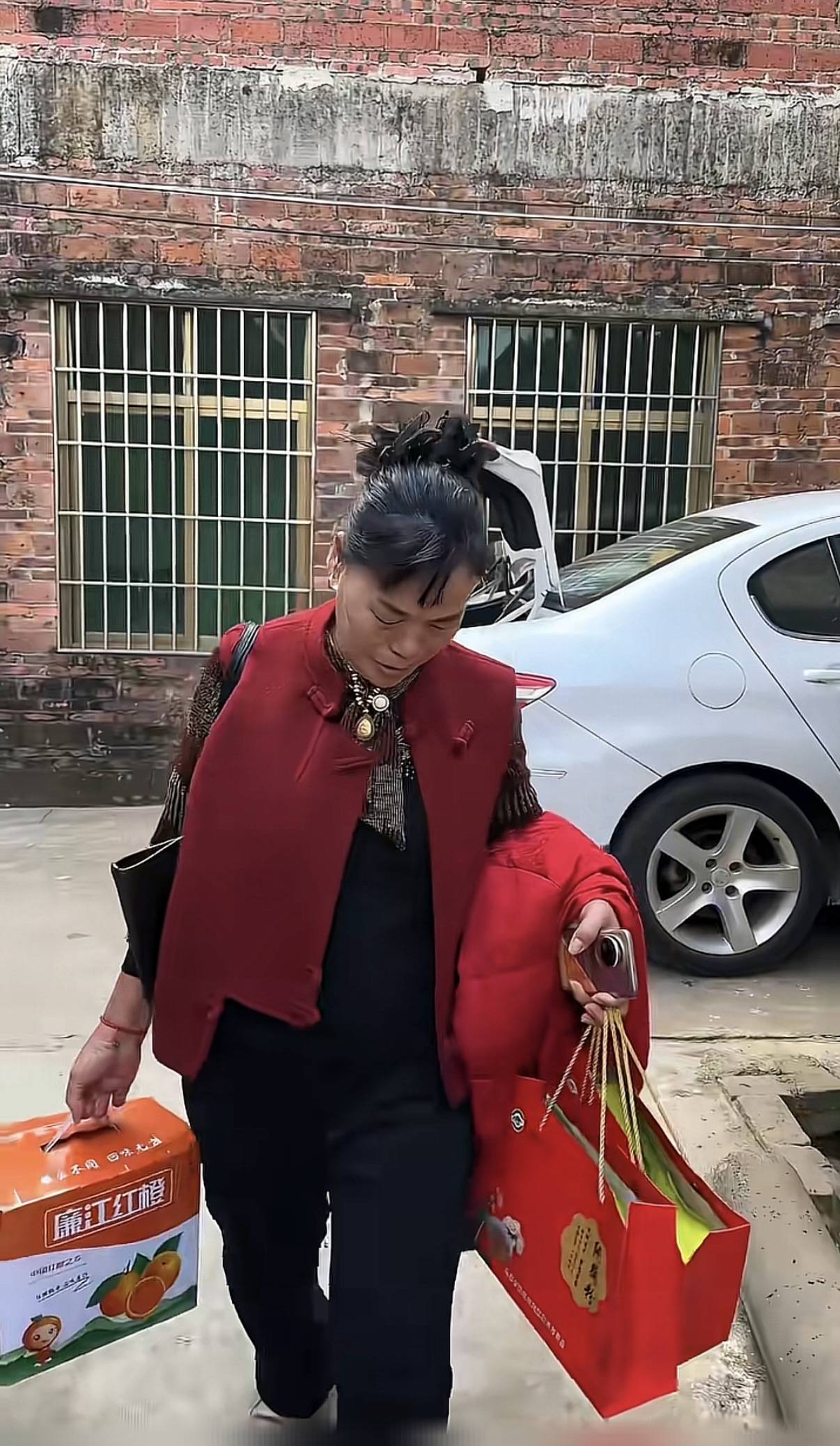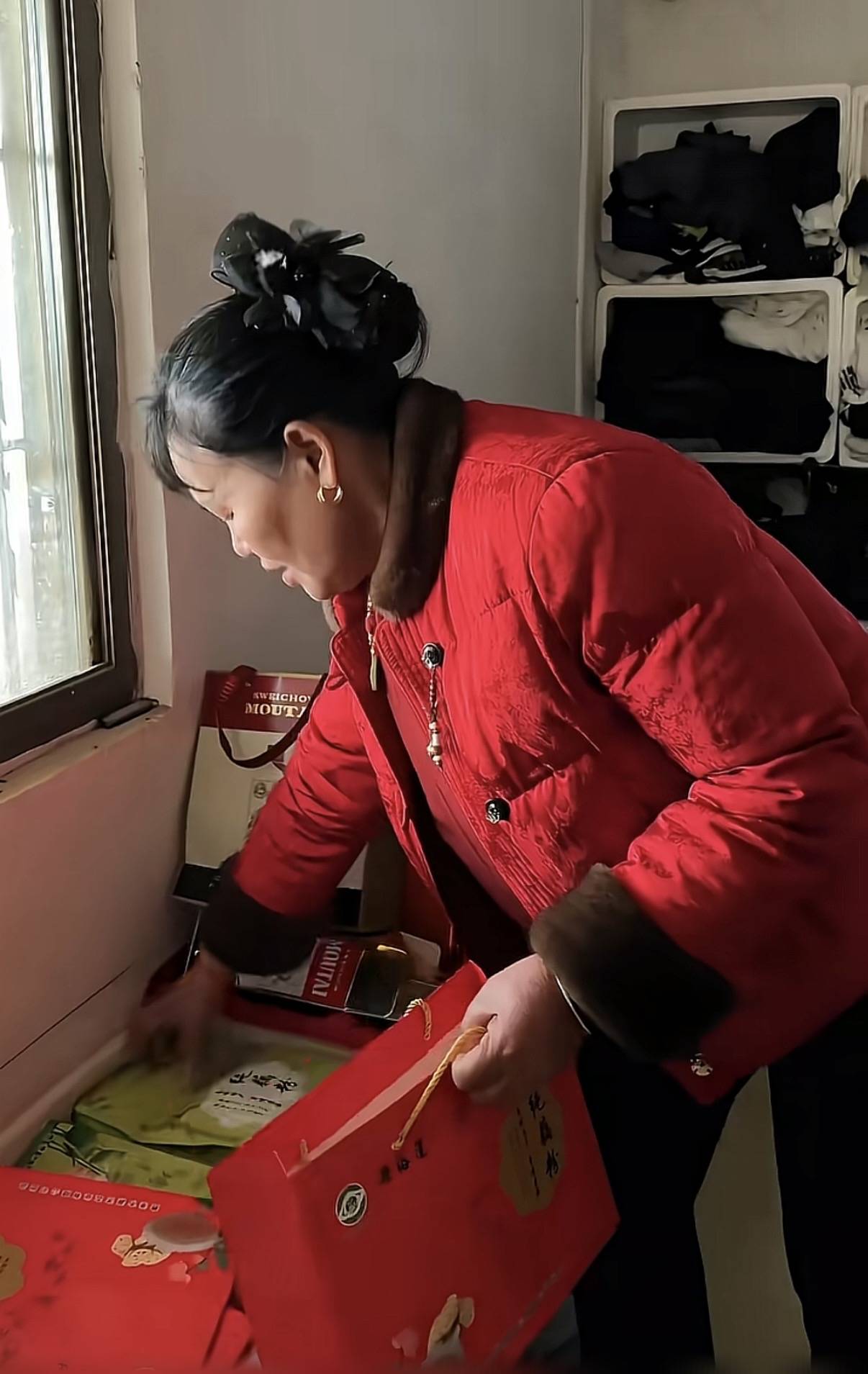 过年的时候难得打扮,全妈穿上红色新中式上衣,瞬间气质就上来了。她亲自打包水果,准备回娘家的节礼。