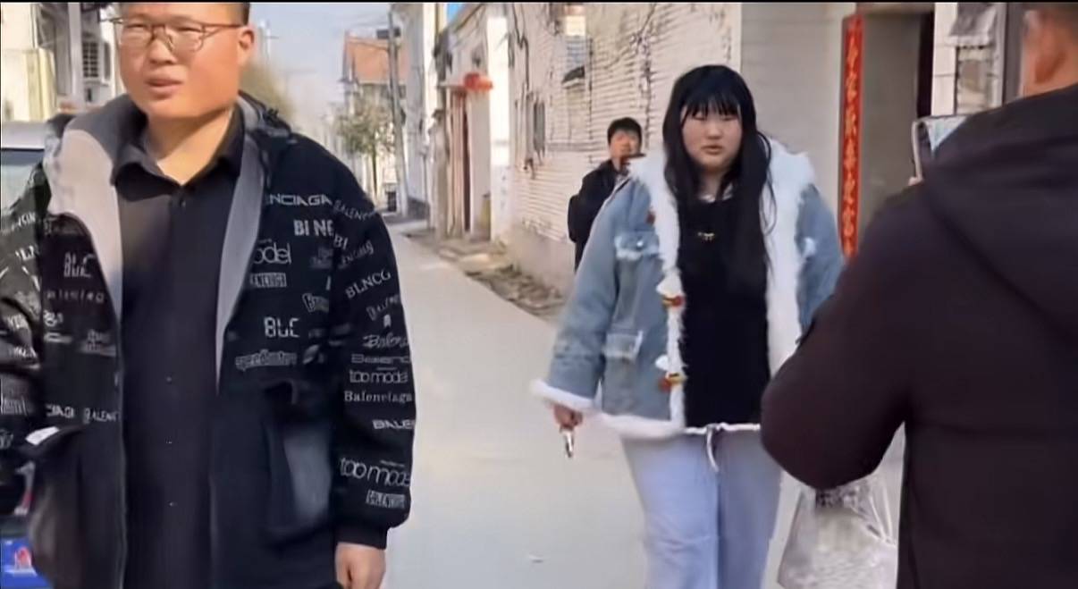 和朱雪梅一同下车的,就是她的新婚丈夫。有一说一新婚丈夫的长相还不错,戴着眼镜还挺斯文的。他穿一件宽松的字母印花外套,很休闲、带着青春感。