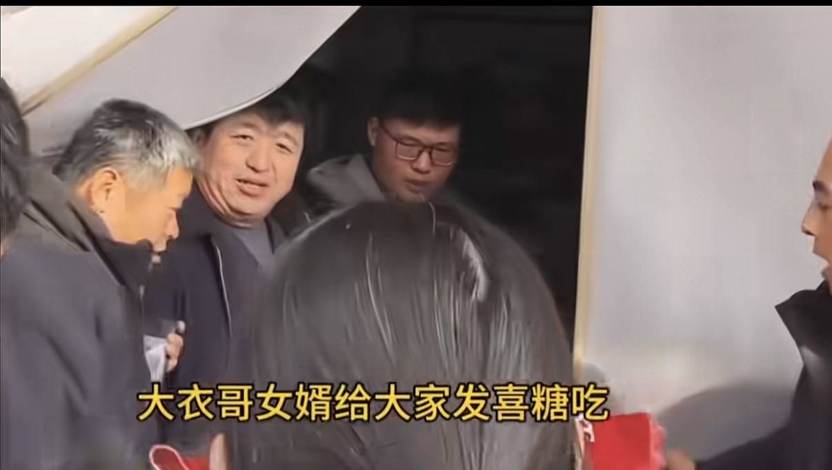 而这时候围观的网友还在起哄,让大衣哥的女婿给大家发喜糖吃。
