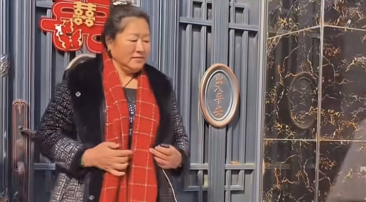 当农民的镜头拉近,才发现朱雪梅顶着一个鸡窝头,头发乱糟糟的。一开始朱家大门关闭,还有网友说让朱雪梅密码开锁,但朱雪梅坚持找钥匙,生怕密码被全网传播了。