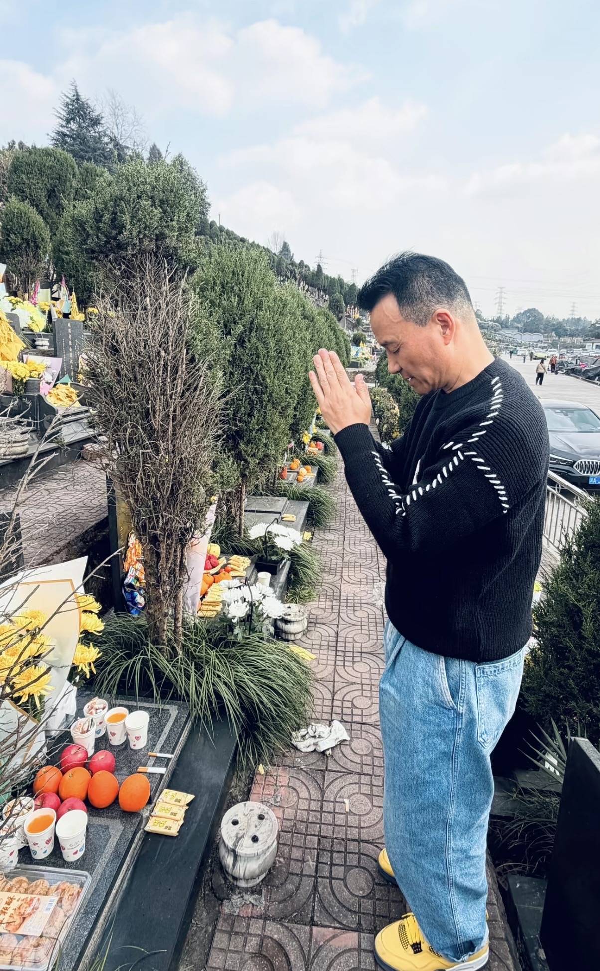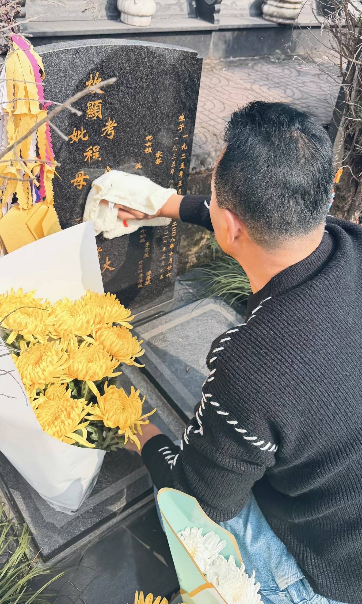 大年初二这一天,程爸在社交平台分享了上坟祭祖的照片。现在的程爸,一年到头大部分时间都在北京给金喜带孩子,很少有时间回到老家。