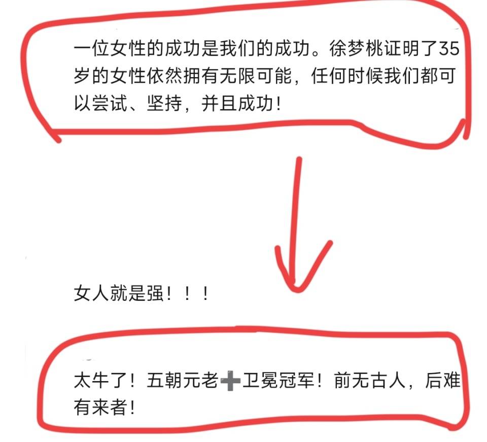 有女网友留言,作为徐梦桃的同龄人,她在35岁的徐梦桃身上看到了更多中年女性人生的无限可能——坚持热爱,为之努力,收获成功。