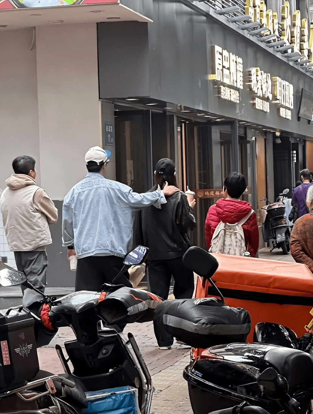 张子萱则一头长发自然披散,身着黑色皮衣与同色工装裤,整体造型同样酷劲十足,气质超凡脱俗,走在街道上格外引人注目。