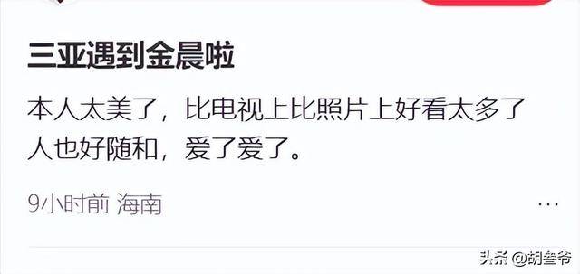 这位网友后来还特意发博夸赞,说金晨本人比电视上好看太多,皮肤又白又透亮,素颜状态绝了。