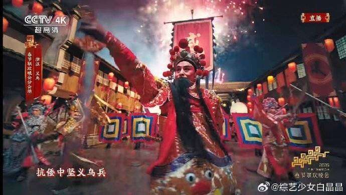 如今,全网都在细致剖析义乌分会场的细节。有网友指出,舞台上有108个拨浪鼓,巧妙呼应了一百单八将;还有人发现,背景中的红糖、火腿,竟然全是义乌的非遗产品。最让人惊艳的,莫过于节目的结尾——义新欧班列从虚拟的世界之窗驶出,将戚继光的海波平与今天的一带一路巧妙地连接在一起。导演说,这一切是无心插柳,可观众却看得透彻——能够让历史与现实交融,才是春晚应有的模样。