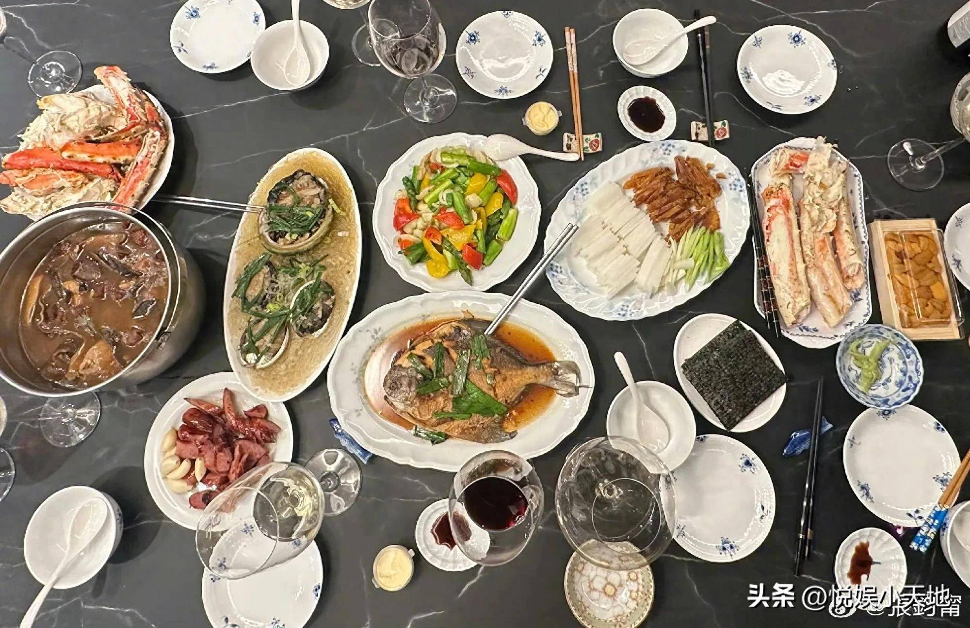 今年春晚后,张钧甯匆匆赶回台湾与家人团聚。大年初一的深夜,她特意在社交平台上晒出了今年的家庭聚会照,照片中的餐桌上摆满了丰盛的美食。桌上有煮鱼、热腾腾的汤,还有美酒相