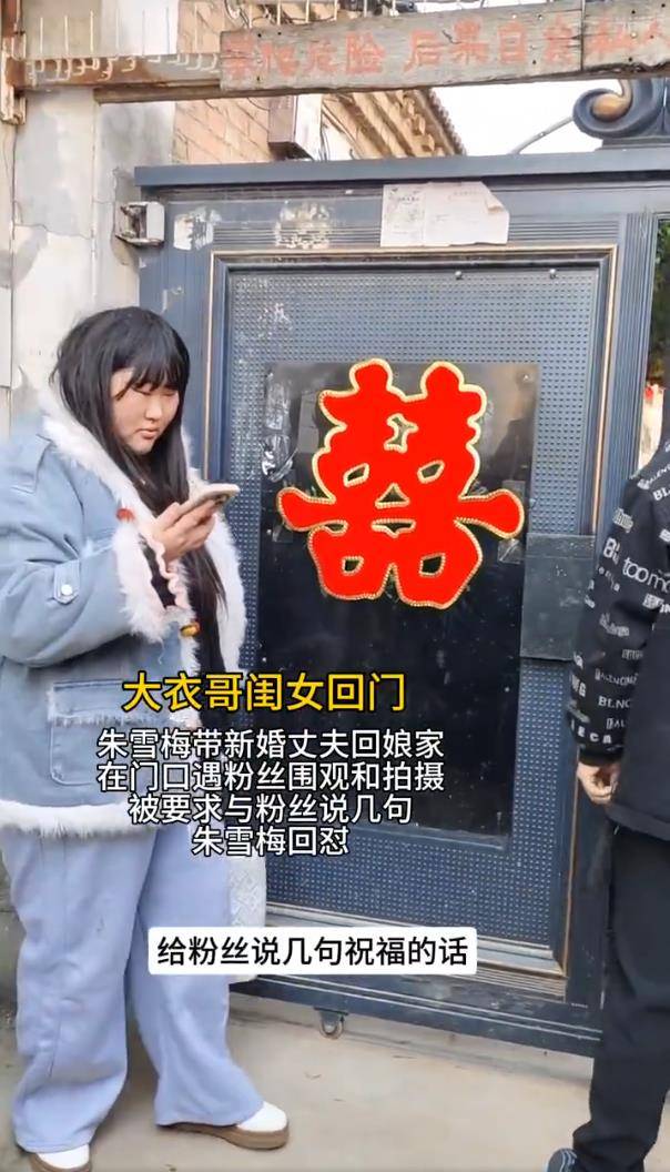 按习俗,婚后第五天(2月18日)是朱雪梅回门的日子。小两口带着堆满两车的礼品,回到山东单县老家。然而,等待他们的不是温馨的团圆,而是早已架好手机、堵在家门口的直播博主和围观村民。镜头几乎怼到脸上,有人高声要求互动,搬运礼品的路也被堵得水泄不通。更让朱雪梅焦躁的是,她提前电话让母亲开门,就是为了避免家门密码锁被偷拍泄露。在多重压力下,她最终黑脸拒绝配合,直接回怼。