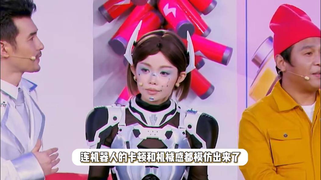 原来,这个在小品《机器人共生指南》里浑身充满“低配感”的机器人,是由世界机械舞冠军芭比真人饰演。她的任务不是展现未来科技的流畅,而是精准复刻一台“过时型号”的笨拙。从关节转动时的刻意迟滞,到语音输出的机械顿挫,甚至精心设计的“系统故障式”抽搐,每一个细节都瞄准了网络记忆中那些老款机器人的经典卡顿形象。这种“反向表演”,让观众完全陷入了“这到底是真人还是机器”的迷惑中。