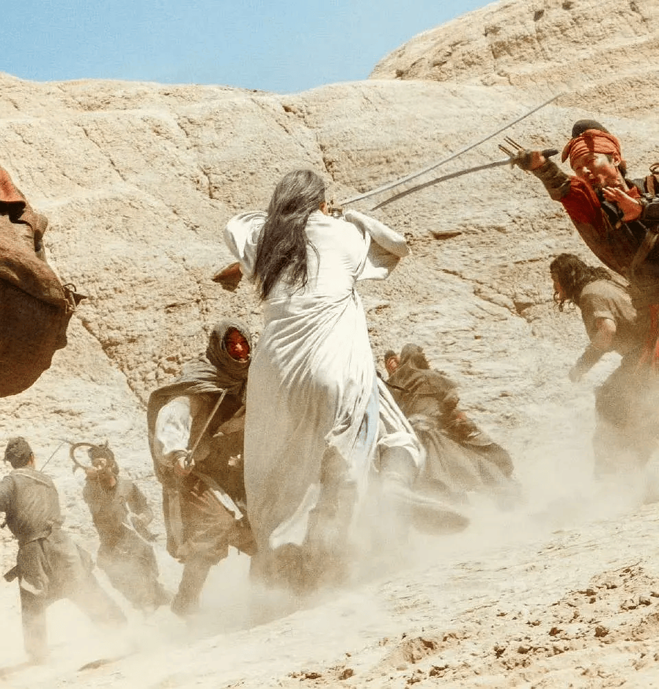 真沙漠、真马术、真射箭、真冲锋。前半段对抗雕翎队和各方江湖镖人,中间有四族联军穷追不舍、沙尘暴历险,后面则奉上爆烈的群战大战,每一场都目不暇接、热血沸腾!