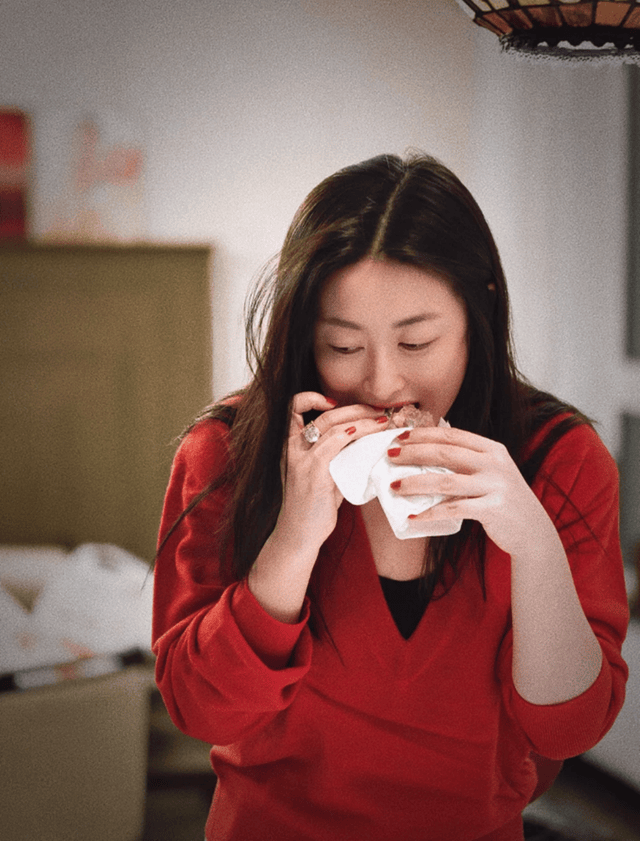 晒出的照片中,身着香奈儿外套出镜的朱珠,只见她站在在厨房操作台前在给碗中的面条加卤,妆容清淡柔和,红唇与指甲颜色相呼应,为整体造型增添了一抹亮色。