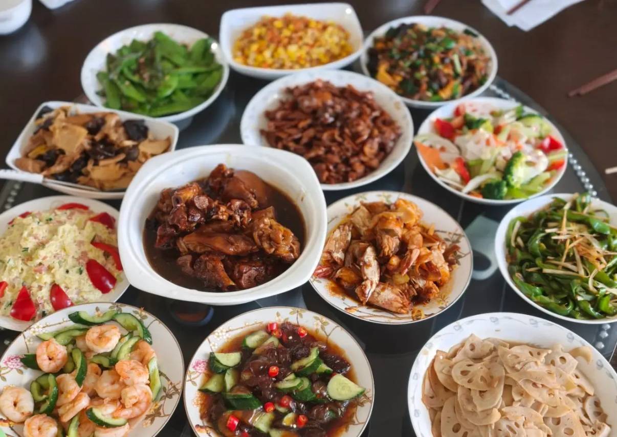 婆婆为了招待明星儿媳妇,也是整了一大桌子年夜饭。黄瓜虾仁、凉拌藕片、干煸熨斗、小炒肉等等,细数了一下足足有13个菜!