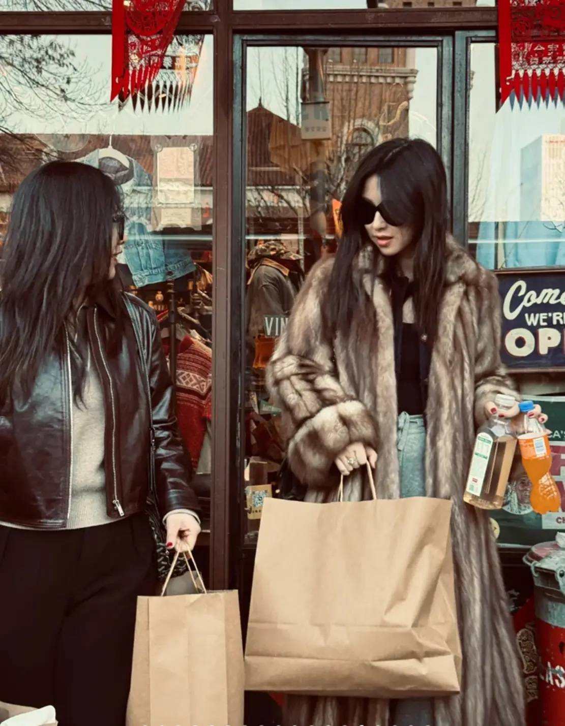 朱珠的气质太好了,她穿长款的皮草大衣、一点都不显胖,是那种复古港风的范,特别飒美。