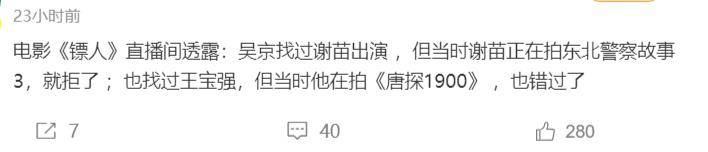 原来,吴京早就发出邀请,想让谢苗来出演《镖人》,可当时谢苗正在拍摄《东北警察故事3》,要知道这系列电影,是谢苗的代表作品,目前,这部电影也已经上映,是一部喜剧武打片,也就是说,因为档期的问题,谢苗才没来拍摄《镖人》。