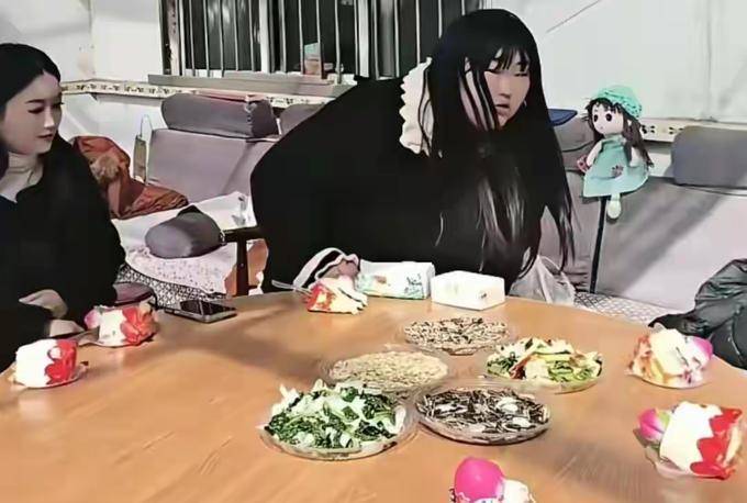 朱雪梅回 到娘家 时选择了一件白色领口的黑色毛衣, 但当她去 丈夫的外婆家 时,她仍然穿 着那件相同的衣服 。由于天气 温暖,她只是 简单地脱 掉了 外套。 这 一次 ,她 还是没有 将头发 整理好, 而是 随意地 去拜访亲戚。