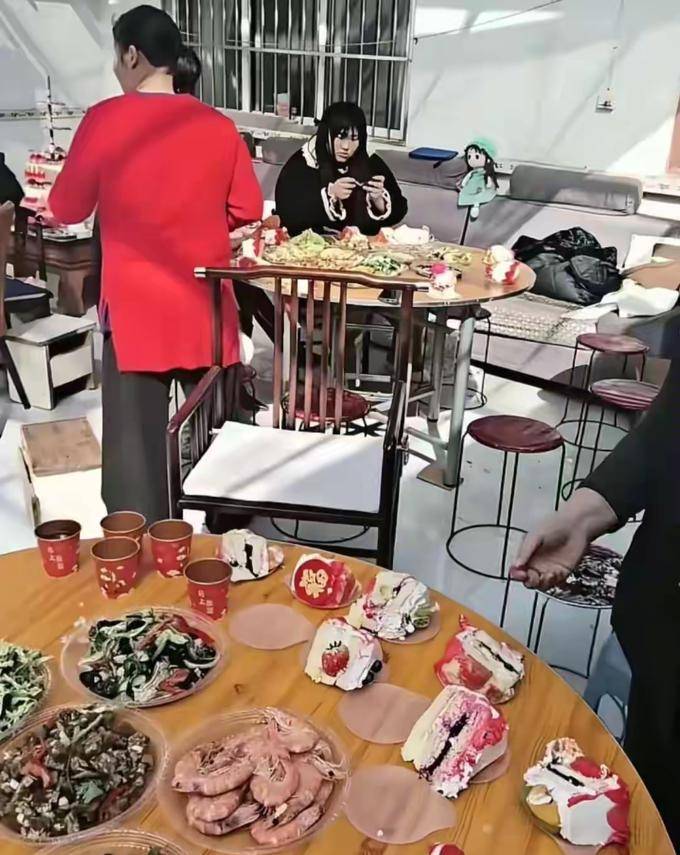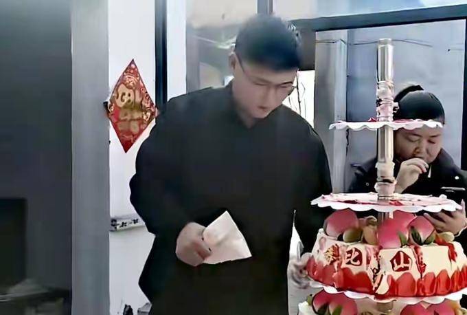 朱雪梅的丈夫在端完菜之后,不仅帮助切了蛋糕,还放了鞭炮,这让他忙得不可开交。大衣哥和大衣嫂的工作态度非常勤勉,他们的眼光也相当出色。