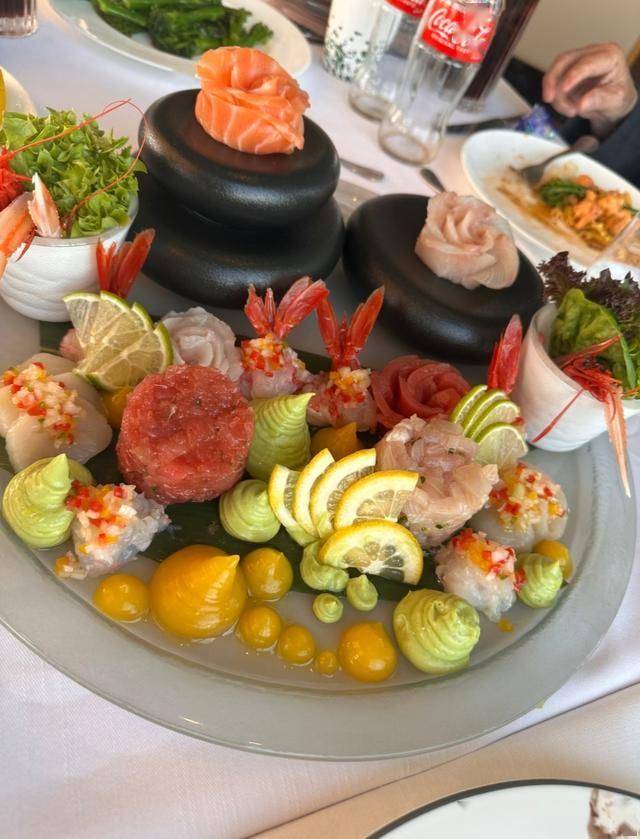 她还晒出了一组照片。其中有多张是美食照,看起来很诱人。