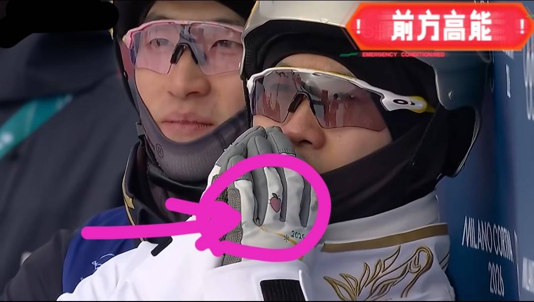 而镜头聚焦时,还捕捉到了隐藏在王心迪滑雪手套无名指上的小细节——一个可爱的粉色桃心。