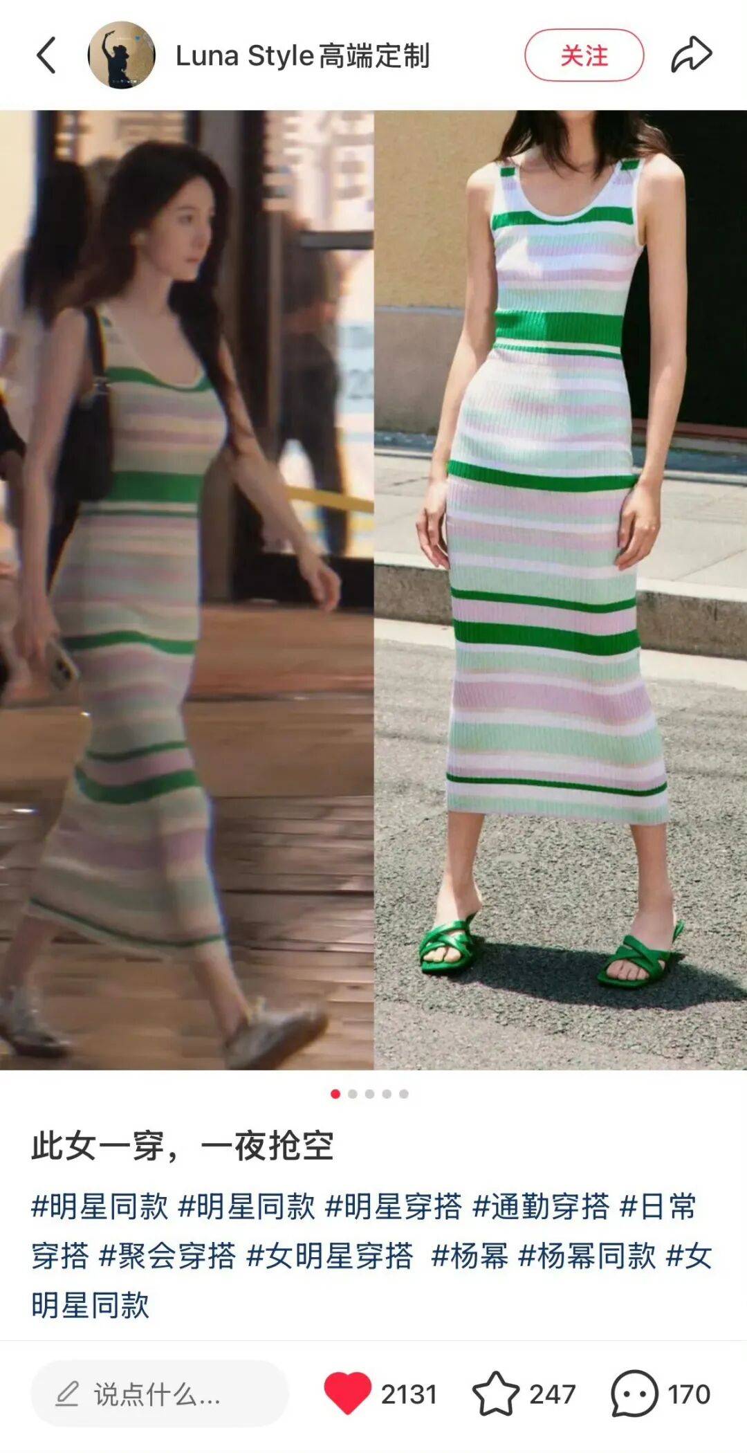 网友求购焦点从白绿条纹延伸至黑灰条纹等易搭款式,印证杨幂是“内娱种草机”的影响力。