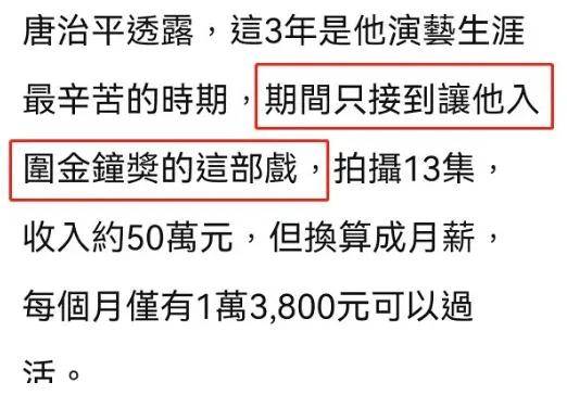 虽然之后还因为电视剧入围金钟奖最佳男演员,但是于事无补,奖项提名并没有给他带来更多工作机会。