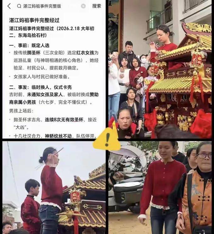大年初二下午两点半,湛江拾石村祠堂门口围满了人。八个壮汉攥紧轿杠,脸憋得通红,妈祖神轿愣是没离地。有人拍了段三十秒视频,镜头晃得厉害,满屏都是尬,网友嘴也毒:不是轿子重,是规