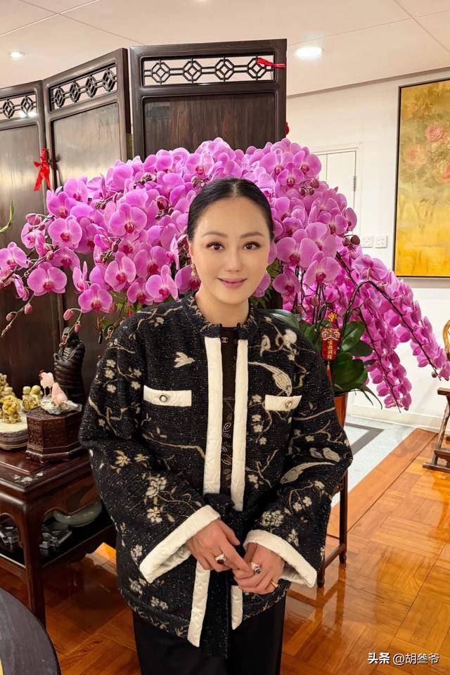 她梳着一丝不苟的大光明发型,发缝在高清镜头下略显宽阔,侧脸的皮肤不再紧致开始皮肉松垮,眼角的细纹和松弛的颈部线条,毫不掩饰地暴露着岁月的痕迹。
