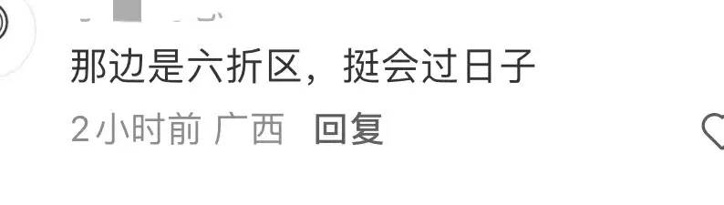 只不过有网友说了句实在话:那边是六折区,挺会过日子。