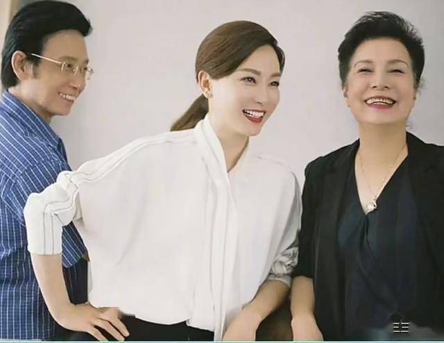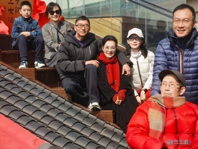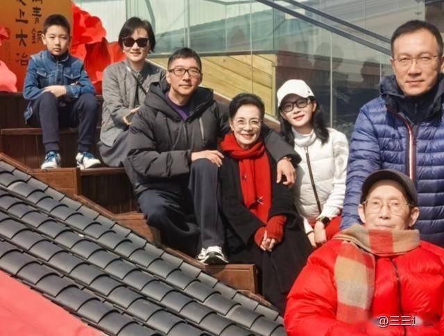 陈数和丈夫搂着妈妈一起合影,陈数的妈妈已经八十多岁了,模样气质都很好,戴着眼镜的陈数妈妈和陈数有五六分相似度,看起来是个很文雅的人。