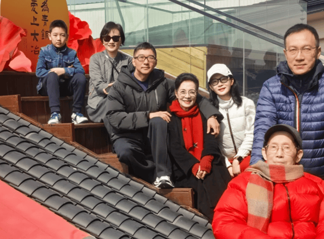 那最前面身穿蓝色羽绒服推着轮椅的男士则是陈数哥哥,据悉,陈数哥哥陈丹是知名作曲家,站姿挺拔的他目光柔和,五官看起来更像父亲。坐在轮椅上戴帽子的年长男士就是陈数父亲,身着红色羽绒服的他,笑容可掬,神态安详,和蔼可亲。