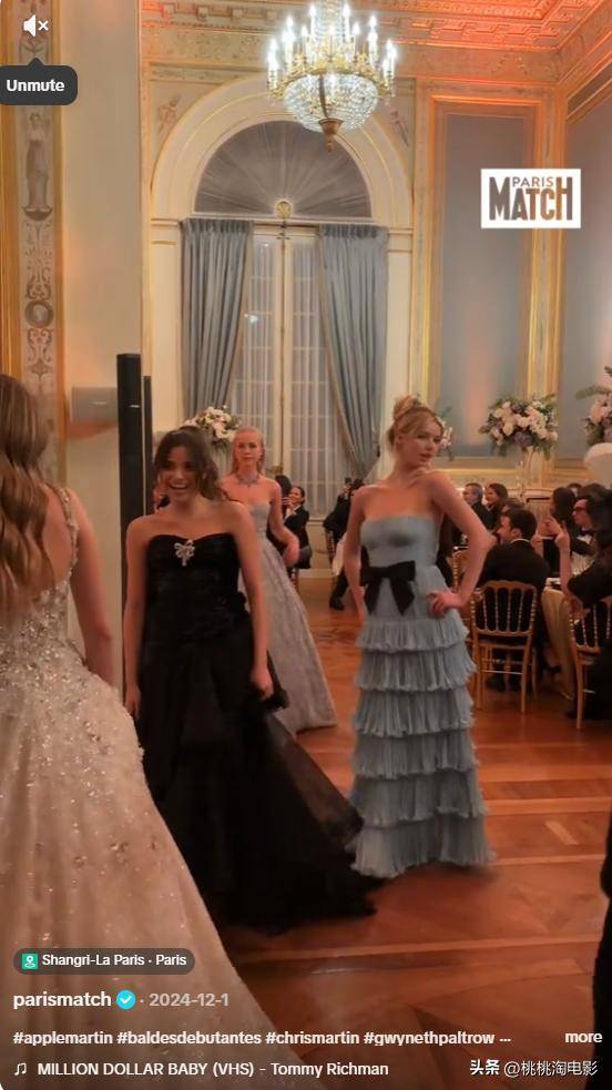 其实这场风波并非空穴来风。早在一年前的巴黎名媛舞会上,Apple Martin就曾遭遇过一场网络指责。当时,在一段与同为名媛的阿莉埃诺合影的爆款视频中,突然跃入镜头并自信摆拍的Apple Martin,被不少网友贴上了刻薄女孩的标签。