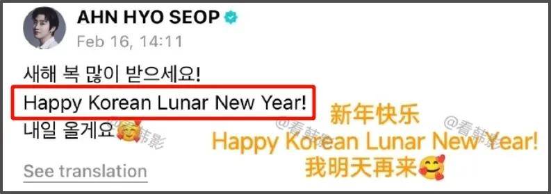 2026年,海外一场音乐会上,中国明星蔡徐坤和韩国明星权志龙就现场上演了中国年之争,蔡徐坤前脚祝福大家“Chinese New Year”,带着观众用中文喊“新年快乐”,权志龙后脚就引导观众喊“Lunar new year”,当众偷起了文化。