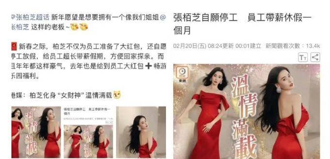 事 件的 根源在于张柏芝 所在的内地团队成员在社交 媒体上公开了公司春节 期间的福利 信息。