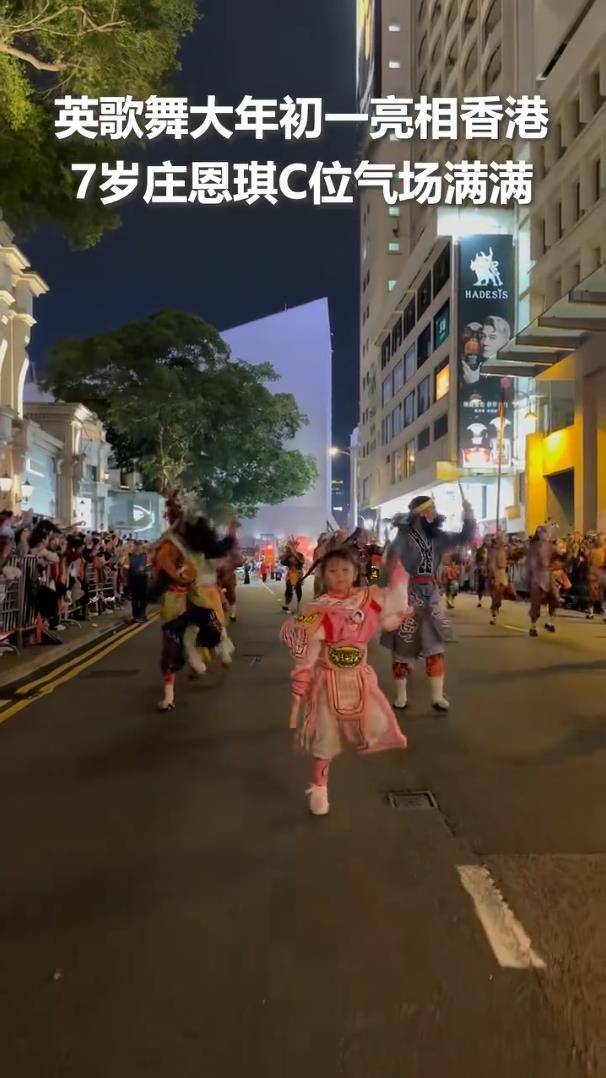 大年初一,香港尖沙咀街头被围得水泄不通,但人群的焦点并非明星大腕,而是一个身高刚过成人腰际的7岁小女孩。她站在巡游队伍C位,手持粉色英歌槌,稚气未脱的脸上眼神凌厉,舞步铿锵