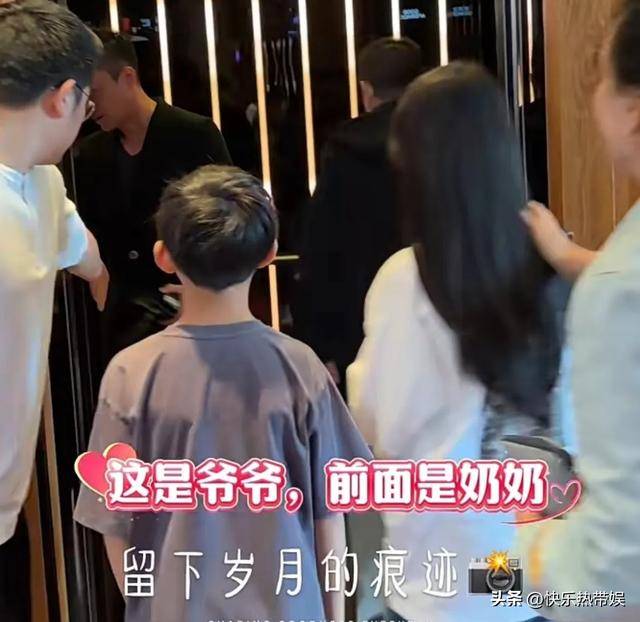 玥儿个子已经很高了,长发微卷,白色卫衣搭配牛仔裤,看上去清爽简单,而箖箖则是咖啡色短袖,两个孩子在爷爷奶奶身边很是乖巧。