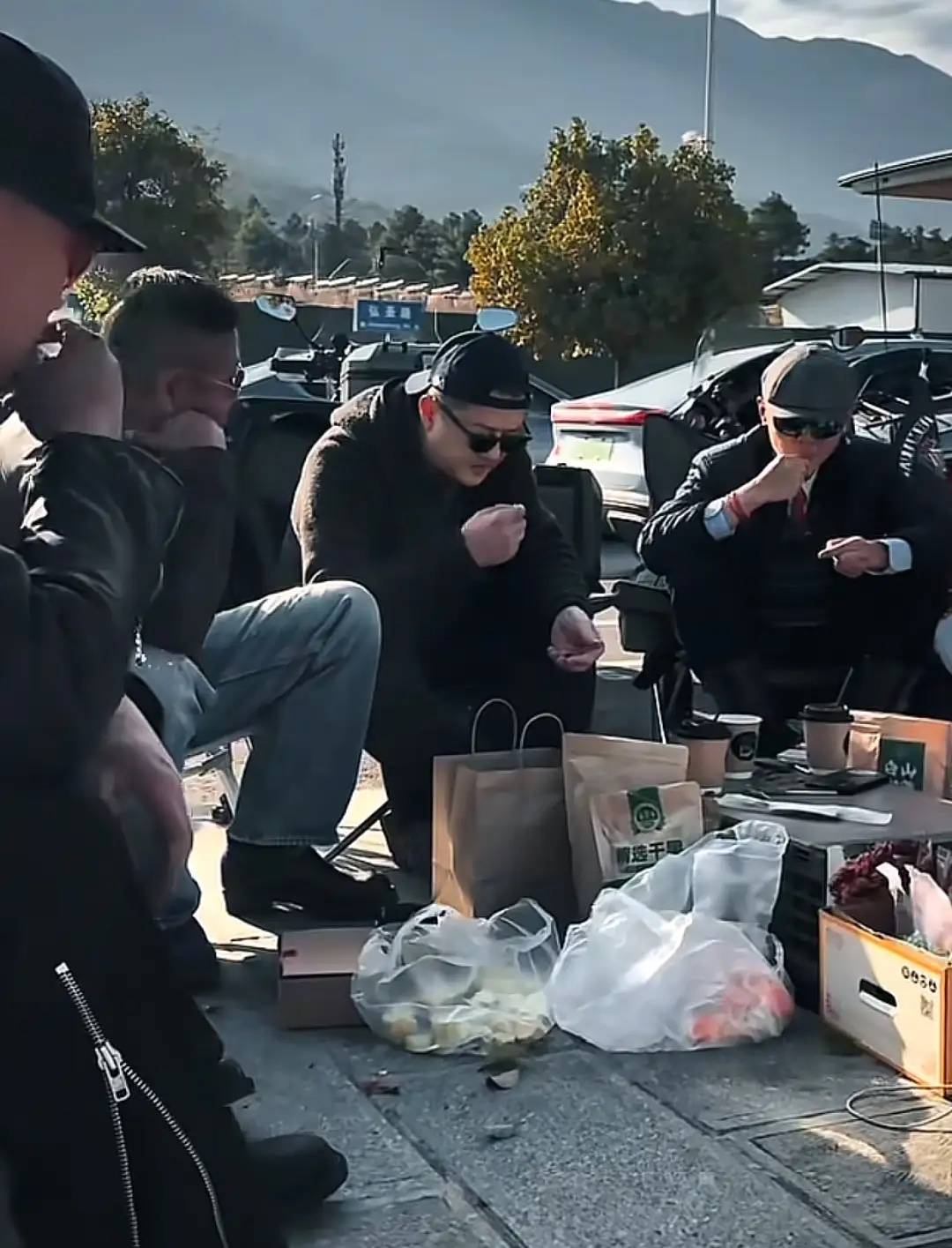 而大冰则完全适应了云南的生活,他的皮肤被晒得黝黑,尤其是手臂和脸颊的位置,仿佛与当地人融为一体。相比之下,李亚鹏可能还不太习惯这样的环境,毕竟他长期生活在紫外线没那么强烈的北京。戴着墨镜坐在阳光下聊天,李亚鹏显得有些不自在。