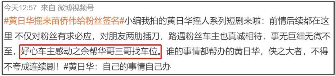 据悉,路人春节期间追星黄日华,黄日华态度也很好,不仅在路边和粉丝闲聊,在听到粉丝遗憾自己没看到苗侨伟,想让黄日华帮忙之后。黄日华嘴上说着“自己的事情自己办”,但签完名之后,立马给苗侨伟打去电话。
