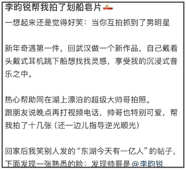 当然,也有接地气的内地明星,比如和妈妈一起游湖,和网友互相帮忙拍照的李昀锐,网友都没认出他是明星,帮他拍完之后,还让他帮自己拍,李昀锐也认真给网友找光线角度。