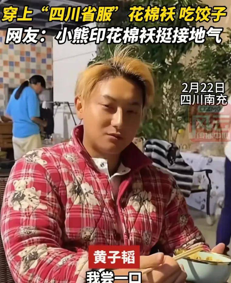 还有去老丈人家拜年的黄子韬。水灵灵地就穿上了四川“省服”,还是大红色的,是徐艺洋舅舅的衣服。网友调侃“黄子韬回村也得找旧的穿”。