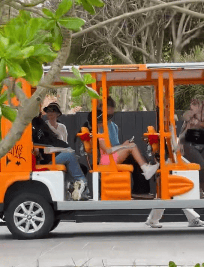 这次章子怡应该是和大哥家的孩子,还有亲朋好友一起来的,看醒醒和旁边的哥哥姐姐聊的非常开心,之后坐着摆渡车来到酒店,准备要游玩一番了,过年的时候也忙工作,现在反而是可以轻松几天了。