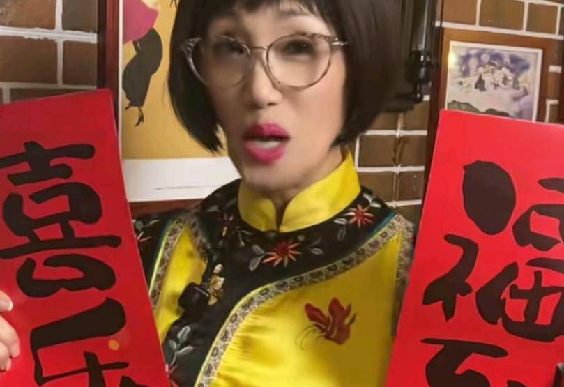 乍一看她这视频还挺喜庆,手捧两条手写春联,很有诚意。