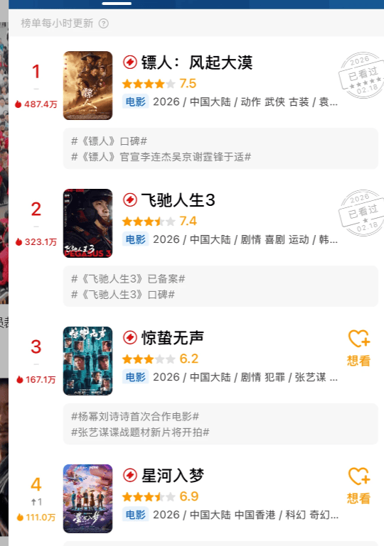当然了,镖人最近的走势不错,是这两天才开始反超的,前几天惊蛰票房高,从昨天开始镖人日票房才反超1000多万,今天超了2000多万